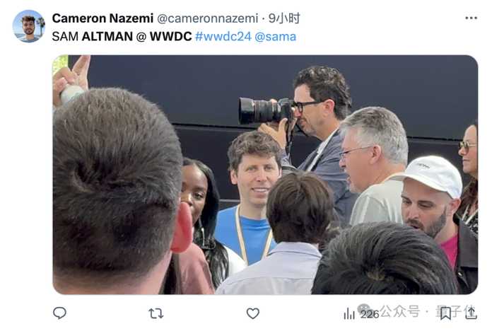 剛剛結束的WWDC上,蘋果宣佈與OpenAI達成了合作。OpenAI CEO超人力霸王也被發現出現在了現場,被無數果粉「活捉」。