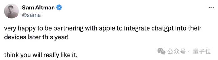 超人力霸王還第一時間發推慶祝,確認今年晚些時候ChatGPT將集成到蘋果設備當中。
