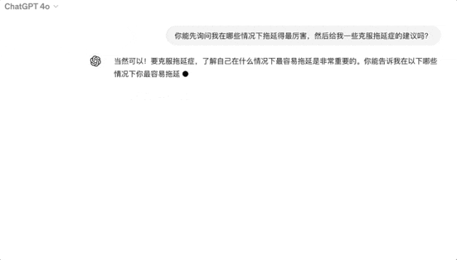 相比之下,GPT-4o 会提出一些建议(把工作甩回给我)。