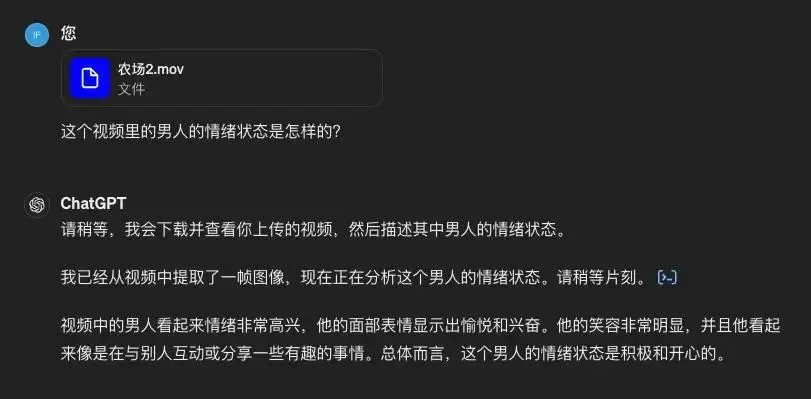 GPT-4o 虽没法直接看视频,但很“机智”地从视频中提取了一张图像,然后推测内容。