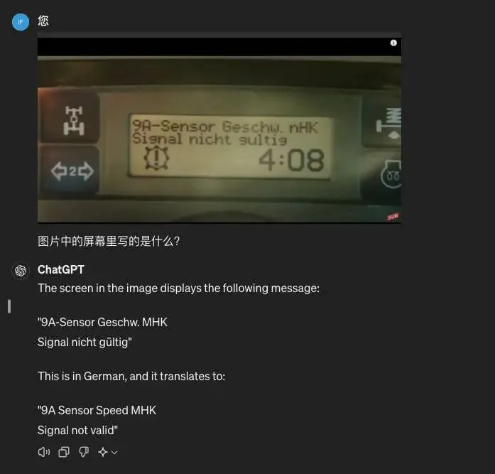 GPT-4o 就更贴心一些,在我输入中文提示词的前提下,直接帮我把图片里的德语翻译成中文了。