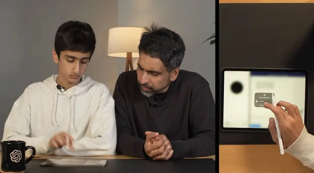 非营利教育机构可汗学院创始人 Sal Khan 和他儿子,被邀请来给 GPT-4o 站台,在 GPT-4o 逐步引导和鼓励的语言下,男生解决了一道数学题。