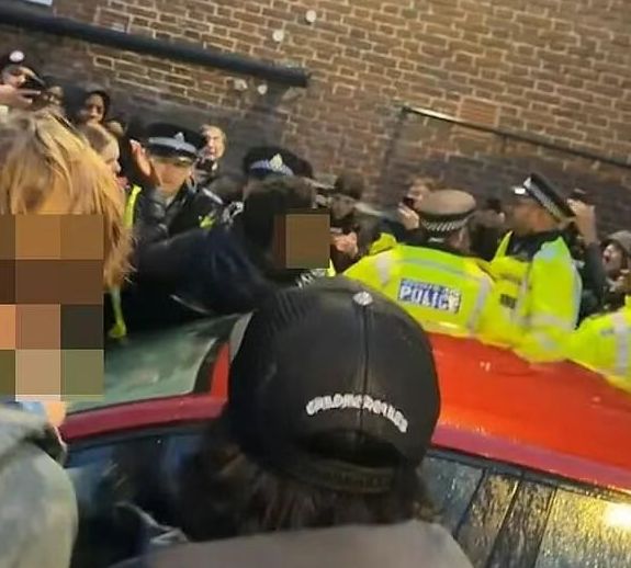 接到报警后,伦敦大都会警察迅速抵达,起初警方还试图温和沟通,几名警官甚至笑着和学生交流,试图疏导拥挤的人群。但这份温和,在人群突破 200 人后彻底失效 ——推搡引发的冲突接连出现,现场的混乱逐渐失控,警方的神经瞬间绷紧。