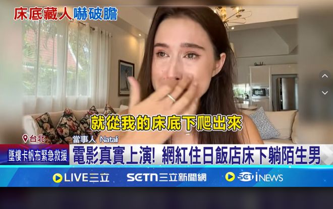 两人短暂对视了两秒。下一秒,Natalisi崩溃尖叫,而那名男子趁机从床底钻出,推开门飞快逃走,整个过程不到一分钟!