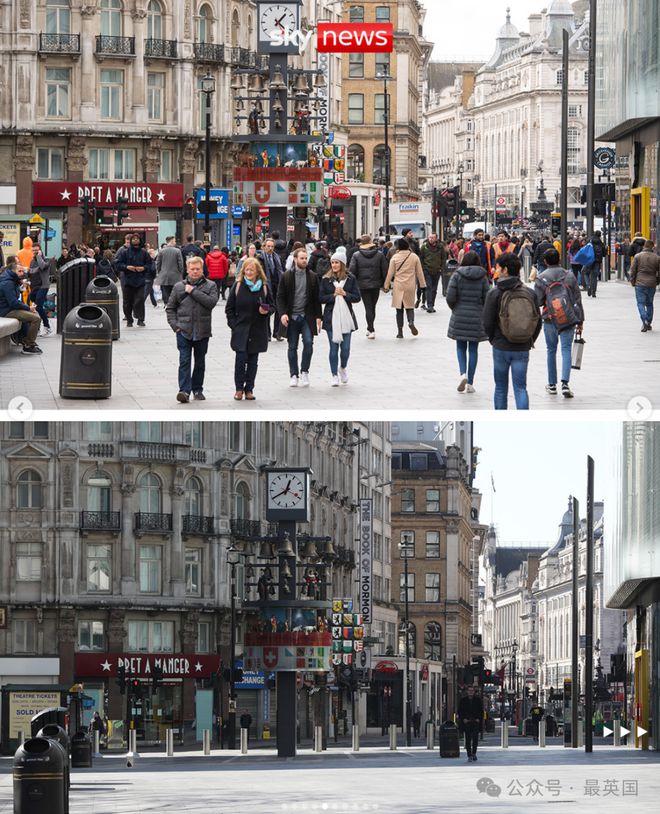 往昔繁华、车水马龙的伦敦,如今变作一座空城的景象。他希望借此呼吁大家,继续坚守在家,迎来胜利的曙光。