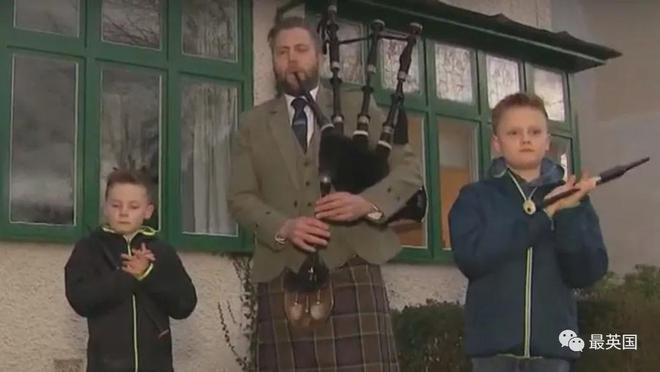 这是每周四全英国范围的致谢活动,向全体奋战在一线的医护人员致敬。有些人敲起了锅碗瓢盆,苏格兰人还吹起了风笛。