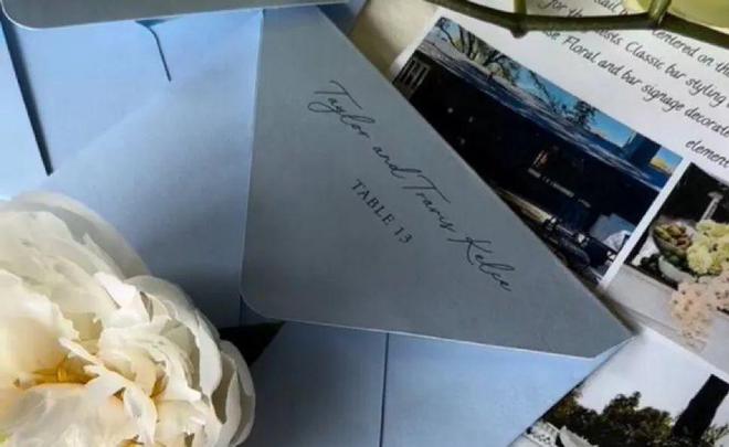就在前不久,凯尔西好友Cole Kmet的一张婚礼筹备照片意外泄露。婚礼策划师在社交媒体分享婚礼细节时,“泄露”了一张用优雅字体手写的请柬卡——