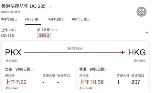 9月8日上午,一架由北京大兴国际机场抵港的香港快运(HK Express)航班UO235,在降落时疑似偏离跑道,撞到草坪,起落架一度冒烟。