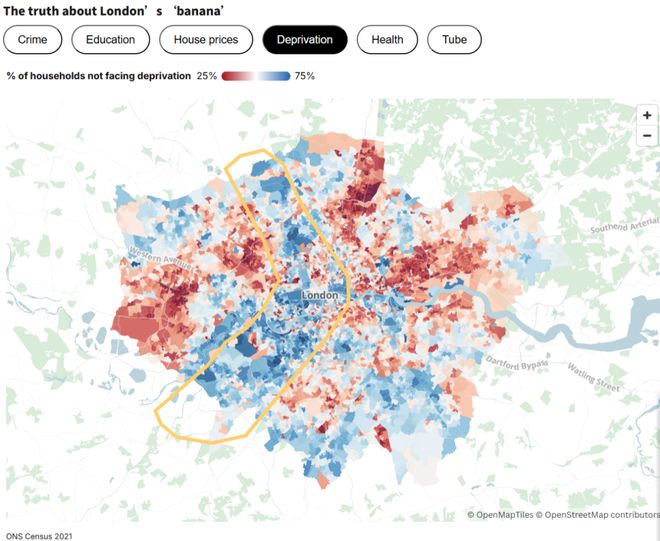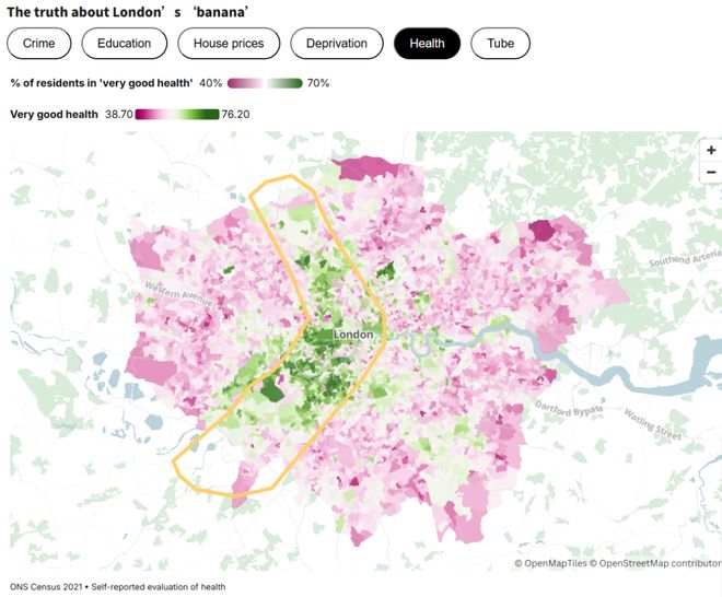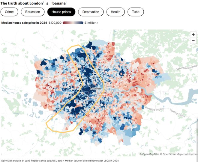 伦敦最受欢迎的区域在哪里,你知道吗?前段时间有个伦敦“香蕉图London banana”在网络上迅速走红。