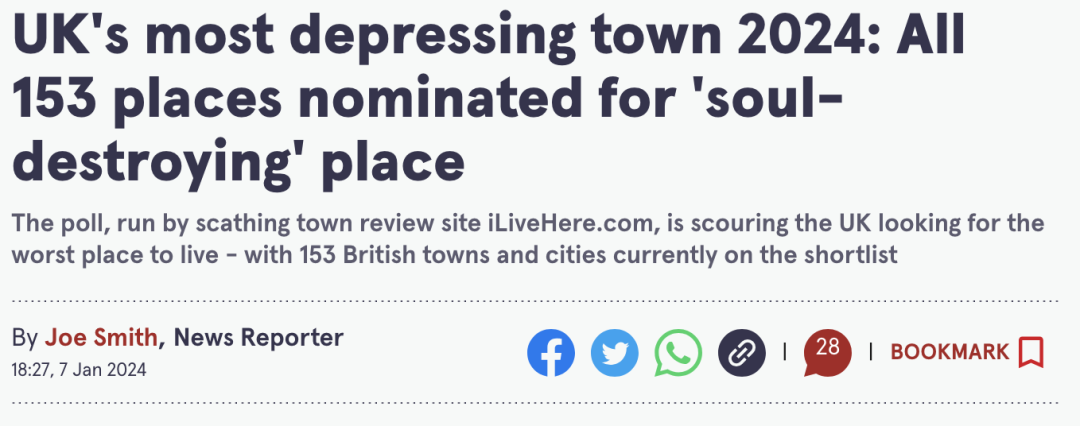 这项由城镇评论网站“iLiveHere.com” 发起的民意调查正在英国范围内寻找“最压抑的居住地”,且目前有153个英国城镇入围。