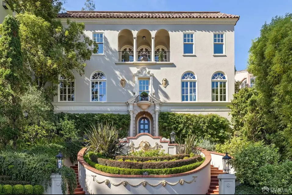 该住宅由建筑师奥古斯特•海德曼(August Headman)于1923年设计,拥有新古典主义的地中海设计,可以欣赏到海湾和旧金山的全景。据挂牌信息显示,这处房产有12个房间,有四间卧室、三间半浴室、一间办公室、一间媒体室、一部电梯、几个阳台和一个屋顶花园。