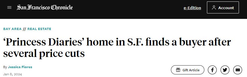 电影《公主日记》中出现的旧金山房产在上市几个月并经过几次降价后,终于找到了买家。