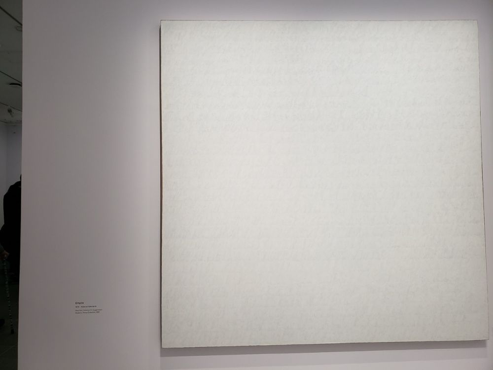 Kandinsky 看了Monet的“草堆”(les meule, fin d’été à Giverny, 1891),意识到形态在解体,开创了抽象画派。MoMA画室看守员Robert Ryman ,天天神交现代艺术大师Mark Rothko, Jackson Pollock, Barnett Newman。。。,十数载的浸淫后,毅然投身于绘画艺术。Kandinsky只是解体了形态,而站在前人肩膀上的Robert Ryman,他还抛弃了色彩,达到了绘画艺术另一个顶峰 —— 一无所有。