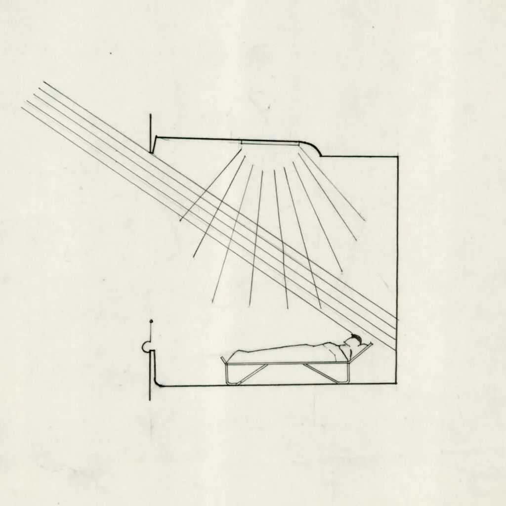 病房作為最小居所的模式在醫院中以相同的形式重複了無數次,國家衛生委員會規定了病房的面積和容積,但建築師面臨的挑戰是如何設計一個環境,讓人們可以在這個嚴格規定尺寸的空間內休息、穿衣、洗手、咳痰並在桌前工作。