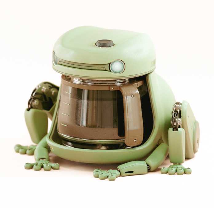 乍一看這是一隻可愛的小青蛙,其實這是一款青蛙造型的咖啡機。設計師採用了栩栩如生的青蛙造型,並且咖啡機的各個部分都與青蛙形象相呼應,如腹部是水箱,嘴巴是咖啡出口等。