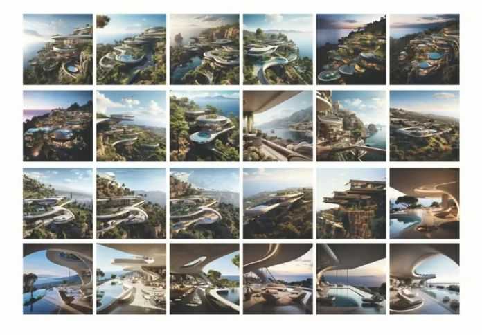 這次合作名為”建構元宇宙”(Architecting the Metaverse),於2022年在首爾DDP博物館展出,是ZHA展覽的一部分。這次合作探索了利用私人擁有的ZHA圖像檔案對DALL-E 2文字到圖像生成進行定製培訓和改進的可能性。當時,為DALL-E 2和ChatGPT等提供動力的所謂大型語言模型(LLM)和預訓練生成轉換器(GPT)技術尚未公開。