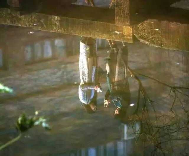 只取水面中畫面,如果覺得複雜,還可以繼續簡化。關於水的倒影拍攝,需要把鏡頭放低,與水面形成一個很好的角度,反射的效果才好。