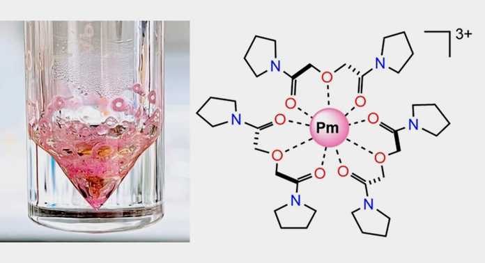 在這項研究中,研究團隊生產了半衰期為2.62年的放射性同位素鉕-147,其數量和純度足以讓研究人員分析其化學性質。像所有其他鑭系元素一樣,鉕也傾向於形成帶3個正電荷的離子