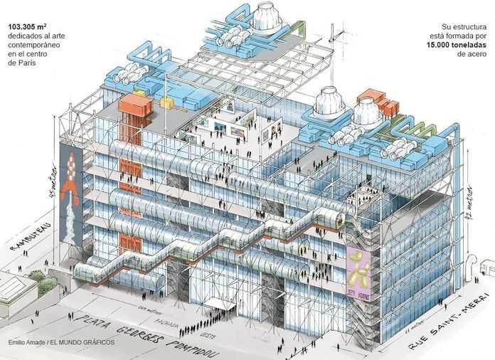 這座由倫佐·皮亞諾和理查德·羅傑斯設計的標誌性博物館自1977年建成以來從未進行過翻修。這次工程旨在提高建築的可持續性,翻新工程預計耗資2.62億歐元,包括拆除外牆石棉、改善消防安全和無障礙環境、改進能源最佳化和內部裝修,為遊客在機構豐富的藏品中提供更多的活動空間。