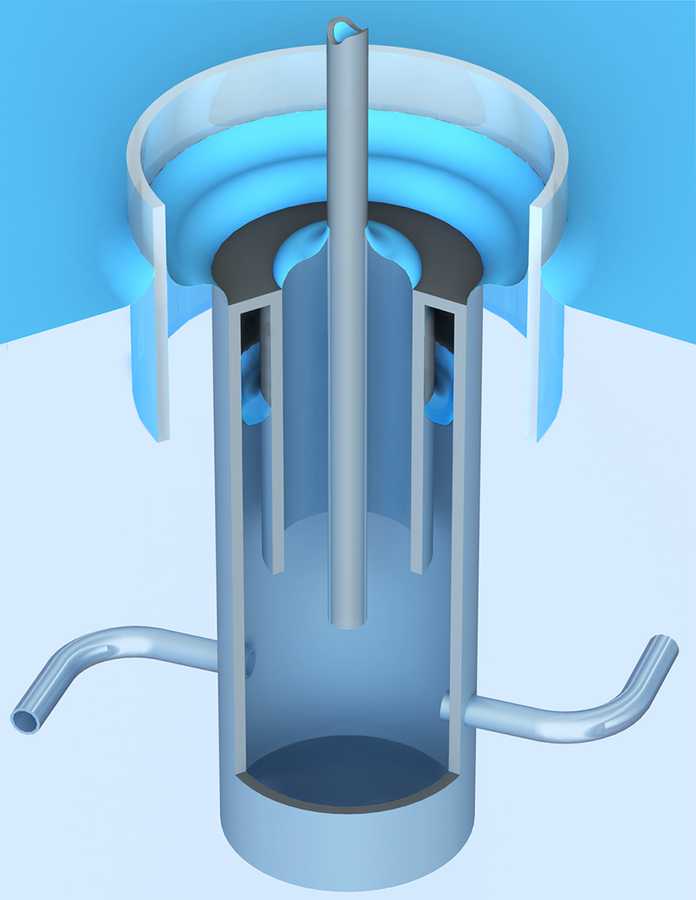 實驗結果表明,無論是正向還是反向的噴水器,都是由噴流推進驅動的。但反向噴水過程並非正向噴水情況的時間反演,當水流被吸進旋臂時,流動模式就完全改變了。常規的正向噴水器就像旋轉版的火箭,靠噴湧而出的水流提供動力。但反向噴水器就像一個「內外翻轉」的火箭,噴流會沿著旋臂流入,並在兩個旋臂相接的腔室中相遇。值得一提的是,它們並非完全正面相遇,而是以一定的角度發生「擦碰」。