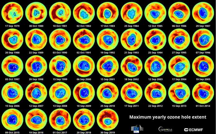 根據美國氣象學家安塔拉·班納吉等人的研究,可以確認,上面的兩個公約的有效落實,讓南極臭氧空洞引發的大氣環流變化至今已基本停止,因臭氧層損耗而引起的大氣變化也將逐步恢復。