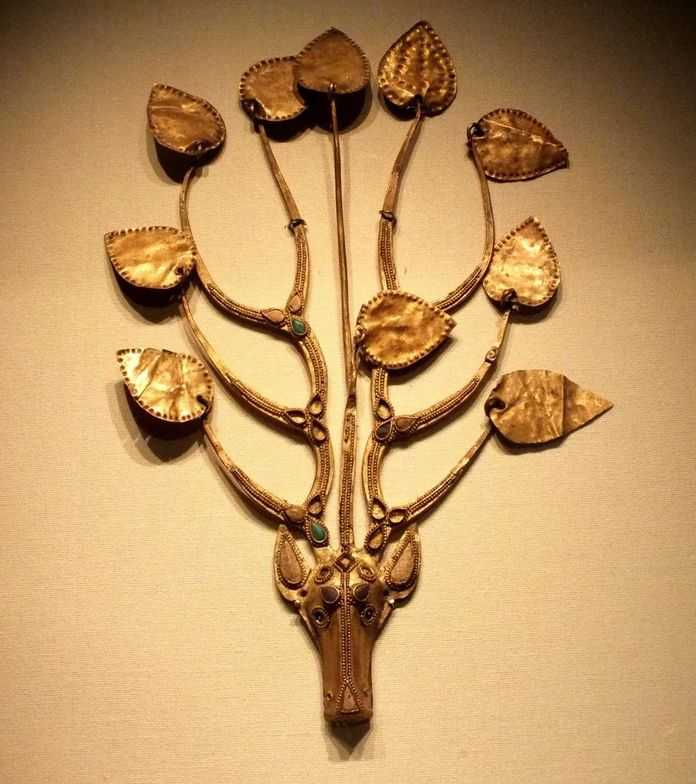南北朝時期馬頭鹿角形金步搖。步搖是中國古代婦女的重要頭飾之一,飾物隨著佩戴者步履的顫動而不停地搖曳,因此得名「步搖」。攝於國家博物館。