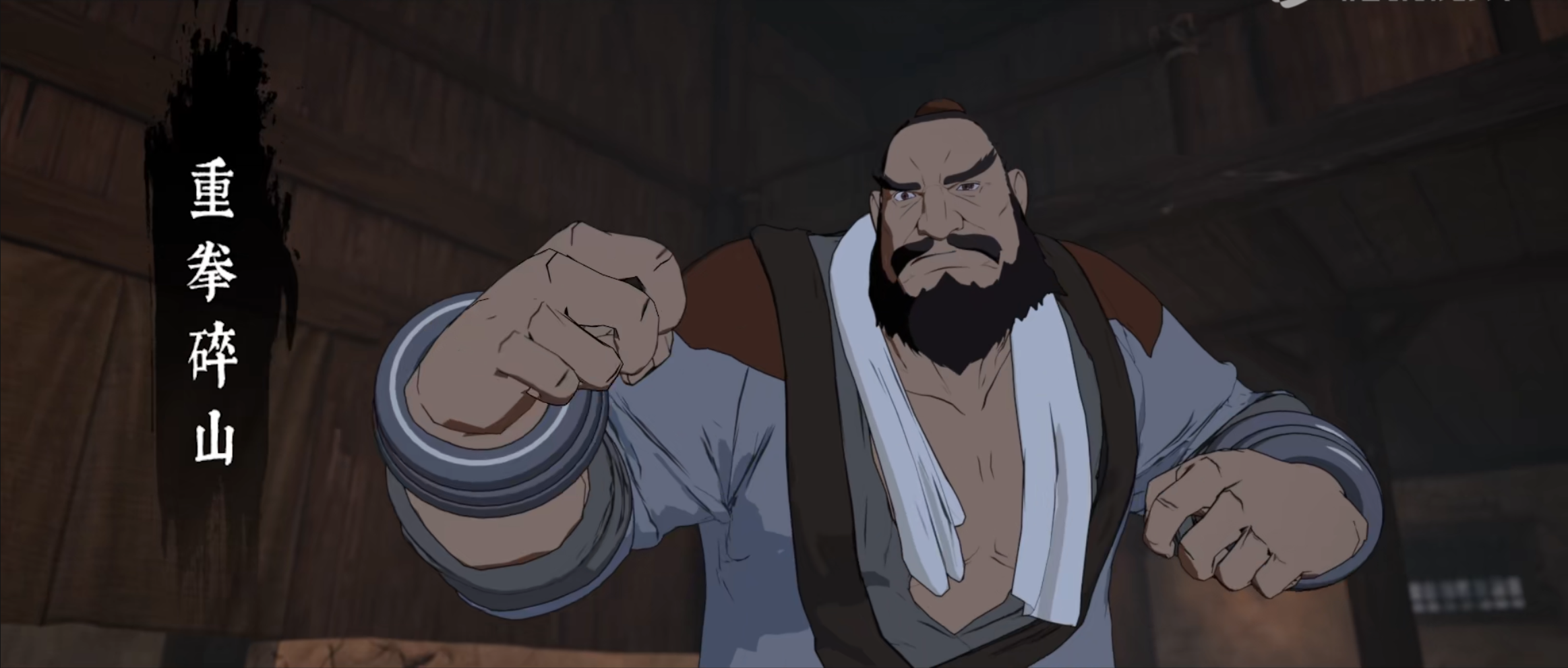 每个角色都有富有个性的武器和招式。铁环缠手的龙顺擅长拳脚功夫,打起来大开大合、横扫千军。