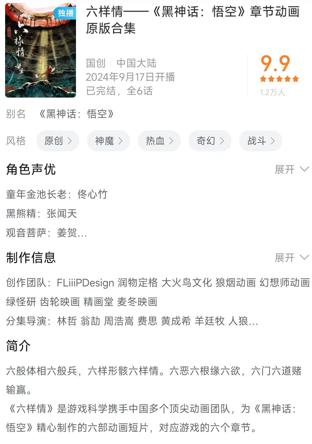 上周,这六段动画的原版合集以《六样情》为标题上线B站,立马就拿下了B站站内9.9分的高分。