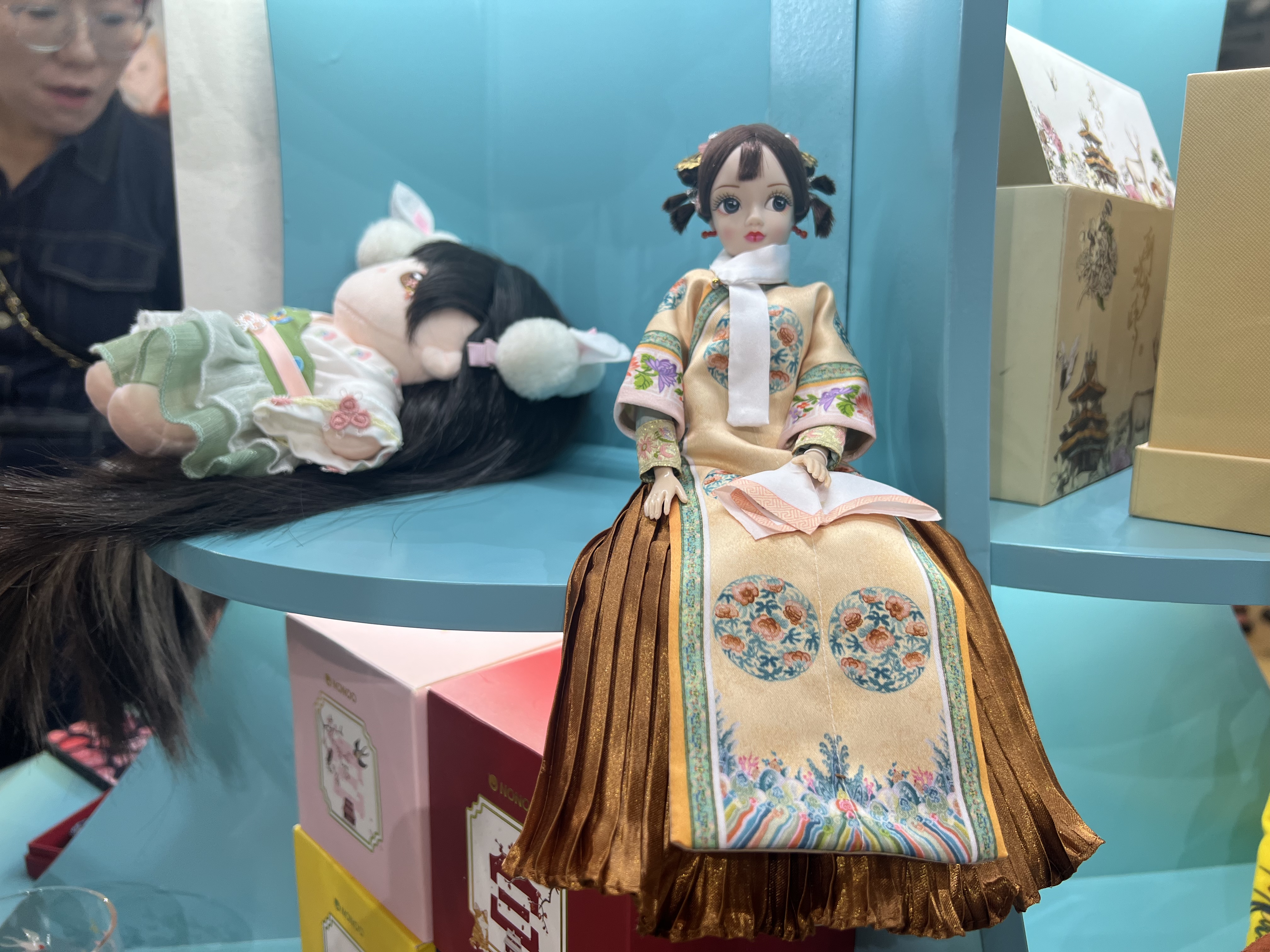 玩具采购选品胡志红在文博IP展区看上了一款汉服娃娃。