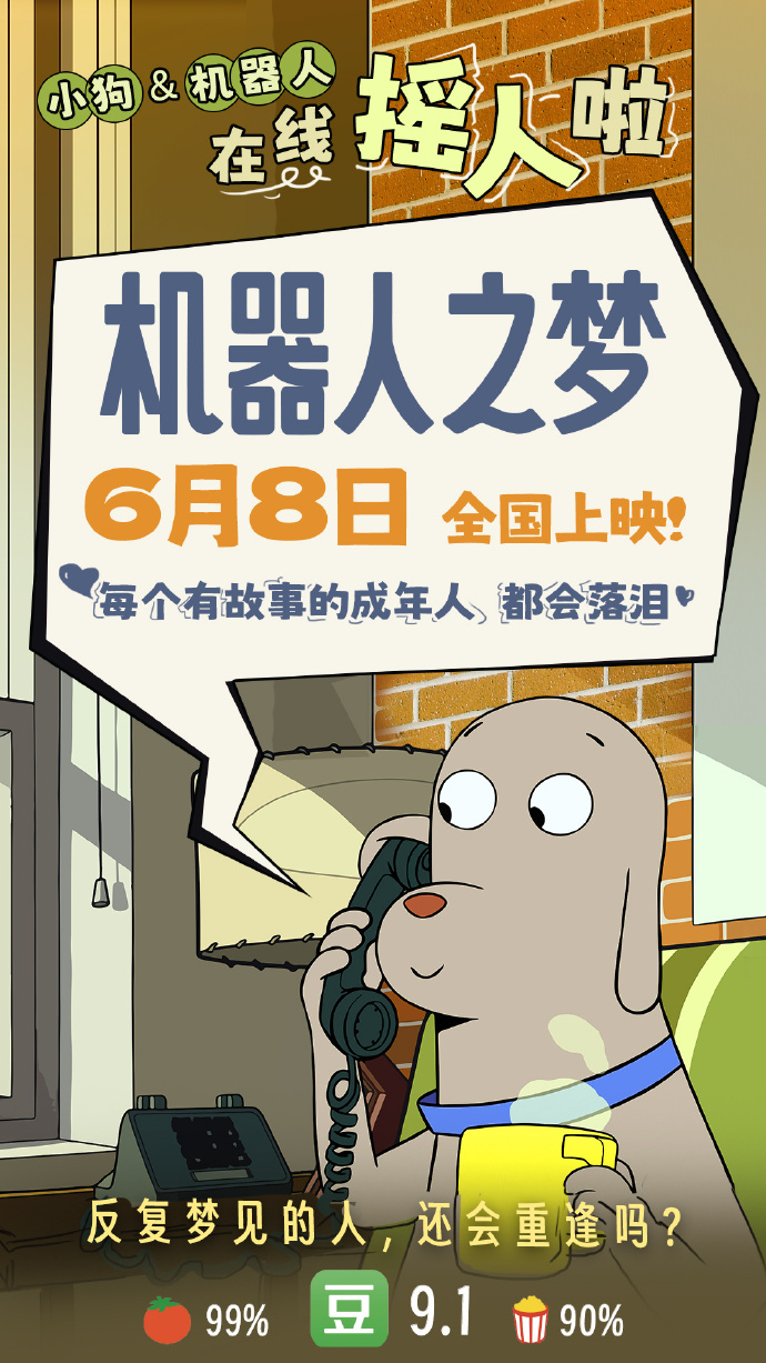 电影《机器人之梦》官宣定档6月8日,机器人和小狗,全网在线摇人。献给成年人的纯爱动人故事,在这个端午节,一起来看今年最暖心治愈的电影吧。