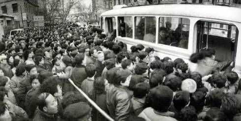 公交車廂通常爆滿,人滿為患。公交車站曾是滬上街景。只要見路邊人群成堆,熙熙攘攘,大家神情不定,引領而望,翹首企足,無疑,那便是公交車站。