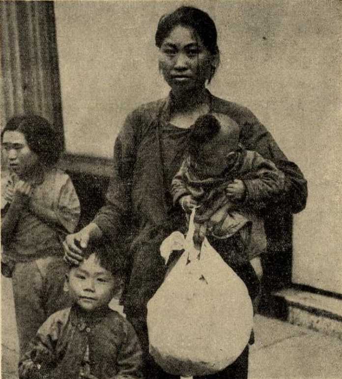 難民們爭搶從法租界扔進的饅頭