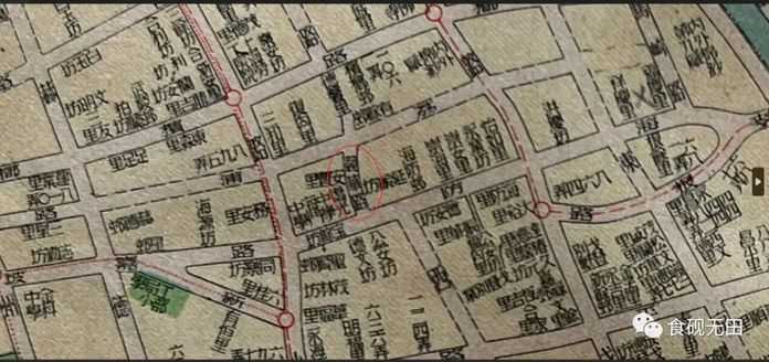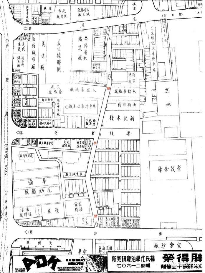 圖1:競華路(1941年版《袖珍上海分區邨裡圖-公共租界西區圖》截圖,紅圈所示)