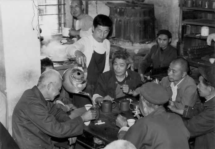與此同時,「老虎灶」兼營賣茶的生意也開始恢復,成為當時退休老人們的集聚地。20世紀90年代初拍攝的紀錄片《老人茶館》顯示:儘管茶館破舊不堪,但在這些老人心中,它卻是一方樂土。茶館成了老茶客們暮年生活的組成部分,如同過去一樣,今天的茶館依然是一個資訊港,茶客們可以從一張張說東道西的嘴中去尋找新奇變換的外面世界。當然,除了喝茶之外,他們還想在茶館裡得到更多的樂趣。