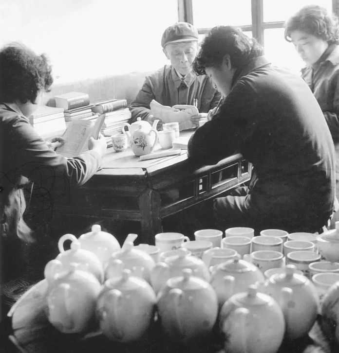公園茶室中,比較出名和成氣候的有淮海公園、人民公園。在那裡喝茶的人,還有一個特點,就是大多為文藝界人士或文藝愛好者。許多人像朋友聚會一般,每天到那裡碰面喝茶。不同於現在人人手上都有手機,通訊極其方便,那個年代,打個電話也要到公用電話廳排隊。所以,公園茶室也成了一些人傳遞文藝演出資訊、互相交流文化界動態的平臺。