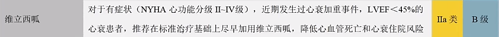 《国家心力衰竭指南2023(精简版)》重磅发布,口服可溶性鸟苷酸环化酶刺激剂维立西呱再获指南推荐,用于HFrEF患者的推荐级别升至IIa类;此外,合并CKD的心衰患者亦推荐使用维立西呱治疗。希望临床能充分利用新版指南,提高对心衰患者的诊断和治疗水平,共同推动心血管疾病防治事业的发展。维立西呱作为全新机制的心衰治疗药物,可进一步改善心衰患者临床预后,给患者带来更多获益,并且已被纳入2023国家医保目录,可减轻心衰患者的经济负担。