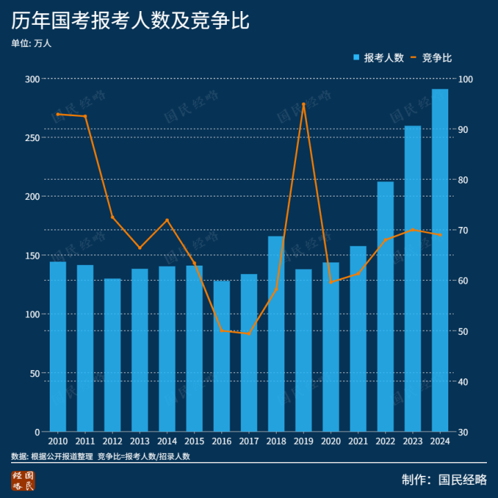 从2024年国考的报名人数来看,仍是千军万马过独木桥,铁饭碗依然很“铁”。