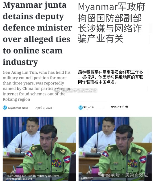 战狼也不敢这么拍呀。缅甸副国防部长因为涉嫌果敢地区的网络诈骗,被缅甸政府拘捕