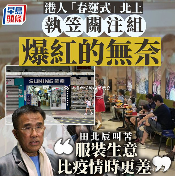 复活节假期,176万香港人北上来大陆旅游,翻了几倍。但对应的,本港生意清冷,与往年同期相比,餐饮业的业务下降了20%至30%。大陆游客不来,本地人也跑了。以前香港的服务业看着大陆人,鼻孔朝天,“蝗虫”、“爱来不来”。这下子自作自受了。 二十三条之后,反倒港人归心了
