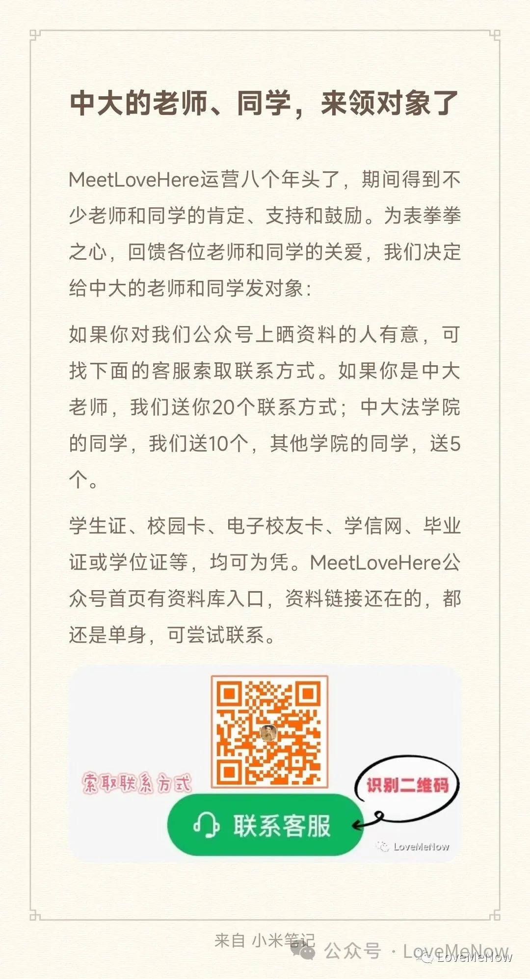在我们公众号发布相亲帖,就可与20位已发布资料的异性交换微信。不想发布,可扫描右边二维码,给小编红包,请小编将我的微信给你