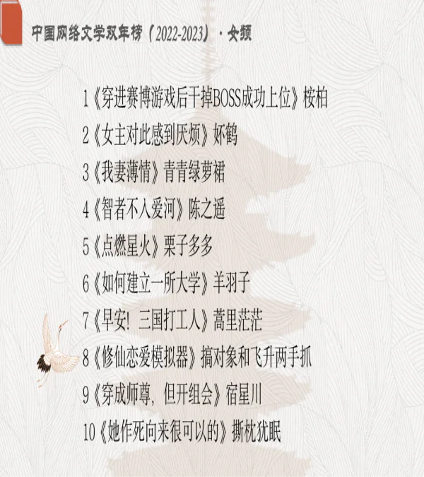 “中国网络文学双年榜(2022-2023)”女频榜单