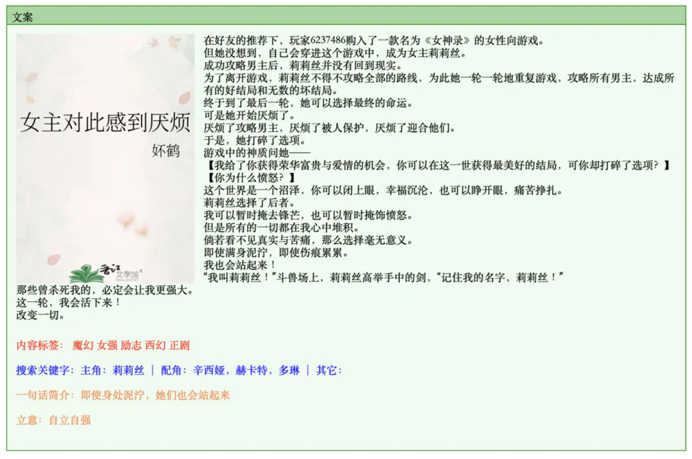 受众于是产生了去创作或阅读真正符合自己审美的作品的强烈欲望,以弥补自己的情感损失。在这种心态下,受众对“大女主”文艺作品构建了一套更加严格审慎的要求,并以此在大量影视、文学作品进行筛选。在这一过程中,原本潜藏在不同类型文中、含有“大女主”特质的女频网文就作为一个独立的类型浮出水面。在这一意义上,读者对“大女主”类型小说的需求,也可被看作一种对大众文化产品模式化生产的反抗。