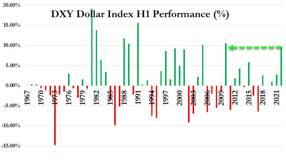 今年上半年交易收官,市场鲜有鲜花和掌声,有的只是血流成河。在过去的六个月中,美股表现为52年来最差的上半年,欧洲股市亦令投资者唏嘘。油价的上半年涨幅创下2009年以来最大,一季末曾翻一番并上逼140美元。债市和数字货币则创下有史以来的最差上半年,美元一路走高。