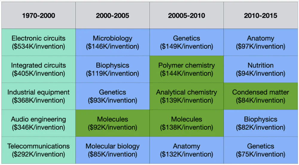 在斯坦福大学的专利组合中,2000年之前,工程和电子相关发明是收入的主要来源。而在2000年后,生物技术的发明成为了收入的新引擎,这也显示了技术趋势的重大转变。