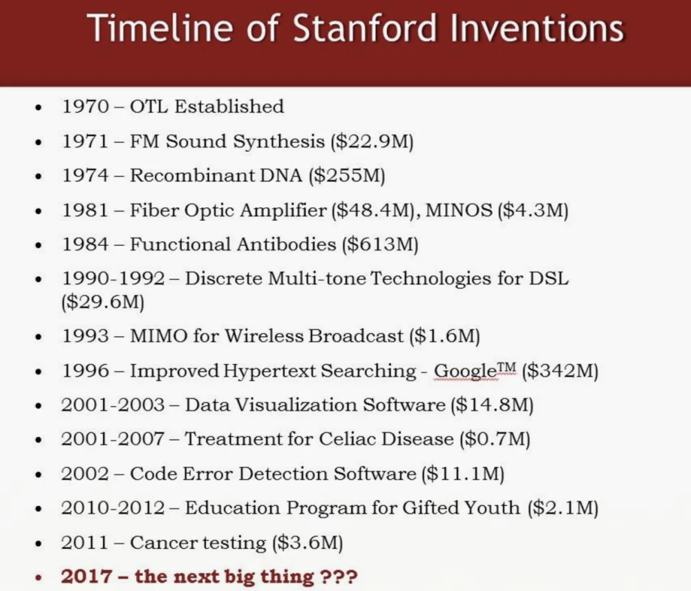 很多伙伴还不特别熟悉OTL,我们首先说一下斯坦福大学技术转让办公室(OTL)的背景: