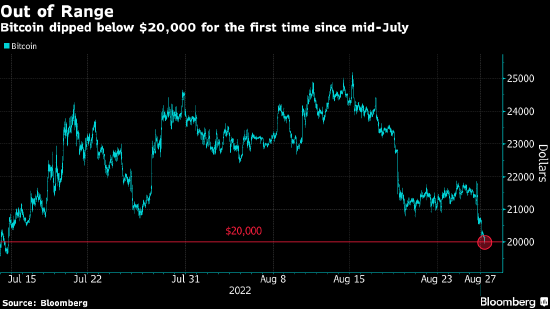 比特币跌破2万美元 因风险偏好情绪再度降温