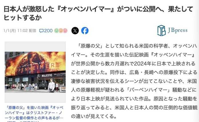 美國原子彈題材電影將在日本上映!引發民眾強烈抗議!網友:又揭傷疤,傷害美日感情!