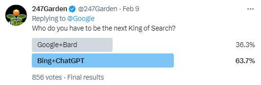 共856人投票,有63.7%都选择了Bing+ChatGPT…….