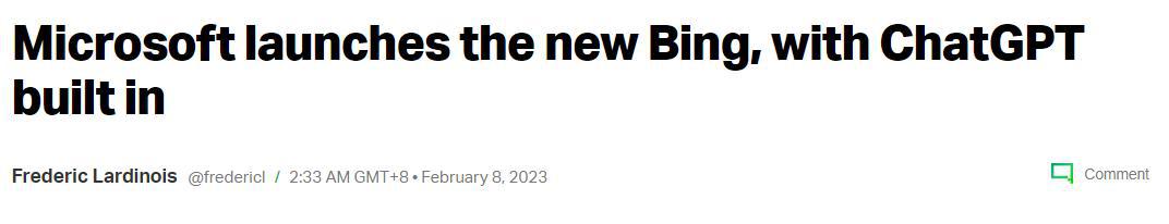 令情况雪上加霜的是,仅在第二天,微软就宣布旗下搜索引擎Bing会接入ChatGPT,完成了完美的背刺……
