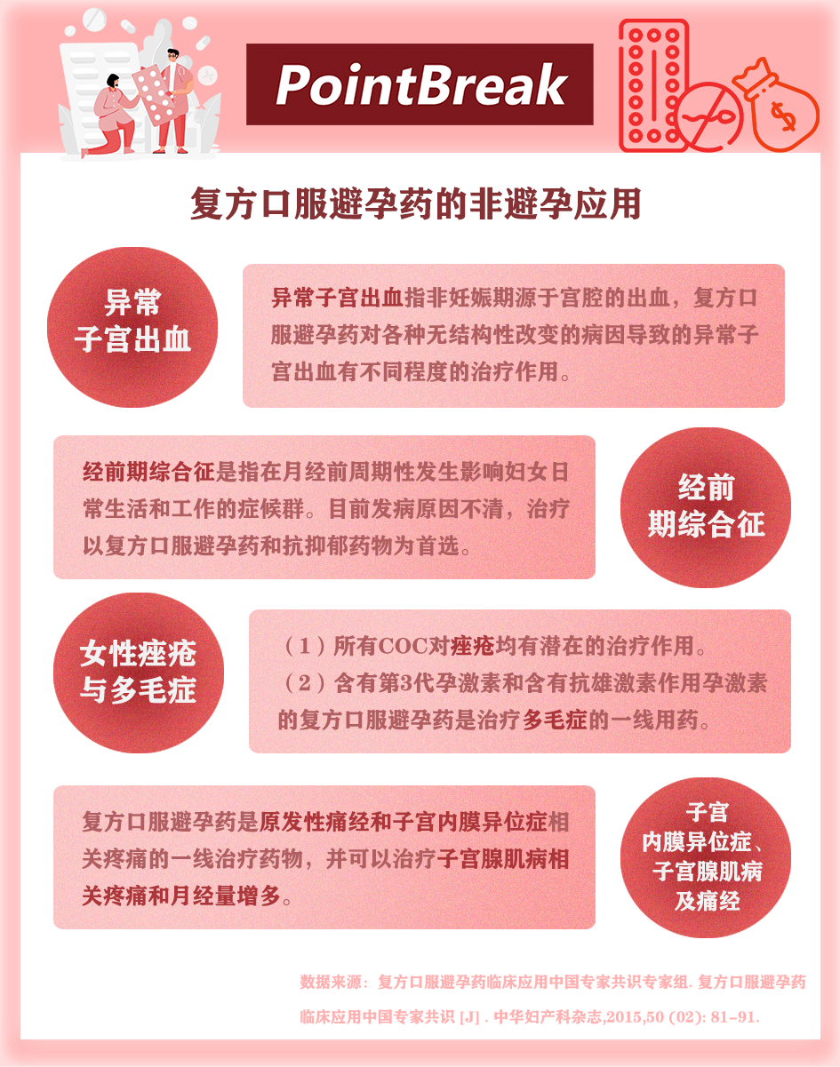 作为避孕用品,避孕药的效果具有较为明显的局限,但其功能并不仅限于“避孕”。据《复方口服避孕药中国临床应用中国专家共识2015》显示,短效避孕药具有多种非避孕应用用途,如降低部分恶性肿瘤的发生风险、通过调节激素治疗异常子宫出血、子宫内膜异位症等妇科疾病。